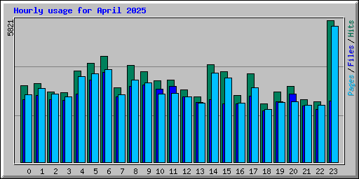 | Hour | Hits | Files | Pages | KBytes | ||||||||